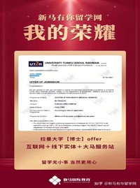 服務優勢:馬來西亞博特拉大學碩士畢業,負責對接馬來西亞公立院校,為人熱情、細心有責任心,幫百分之98以上的中國學生成功申請到馬來亞大學、博特拉大學、理科大學、國民大學等世界級名校。